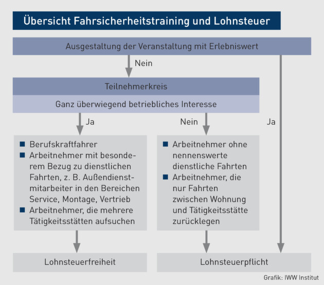 Schon vor vielen Jahren hat sich die Finanzverwaltung mit Fahrertrainings auseinandergesetzt (OFD Koblenz, Kurzinformation vom 22.10.2003, Az. S 2334 A, Abruf-Nr. 040740). Sie stellt auf das überwiegend betriebliche Interesse je nach Teilnehmerkreis und auf die Ausgestaltung des Trainings ab.