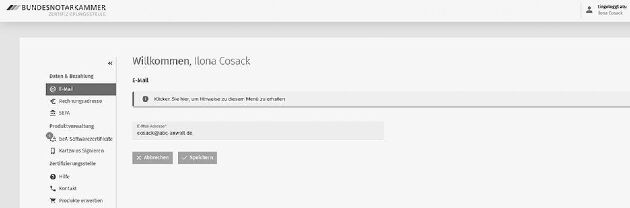 PRAXISTIPP — Für die Fernsignatur ist die Identifizierung des Antragstellers bei der örtlichen RAK (falls von dort angeboten: Kammerident) oder die Unterschriftsbeglaubigung bei einem Notar (Notarident) erforderlich. Dazu benötigen Sie Ihren Personalausweis oder einen Reisepass. Beim Reisepass ist allerdings eine aktuelle Meldebescheinigung zusätzlich erforderlich. |