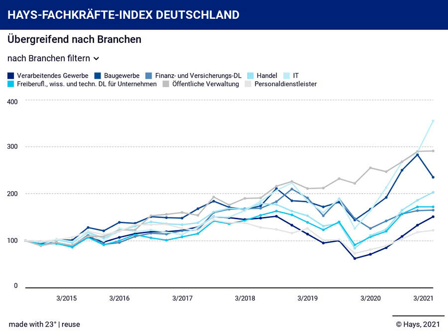 Die Suche nach geeigneten Fachkräften zieht in der deutschen Wirtschaft weiter an. Der von der Beratungsfirma Hays erstellte Fachkräfte-Index klettert um 18 auf 192 Indexpunkte und erreicht damit einen Höchststand ...