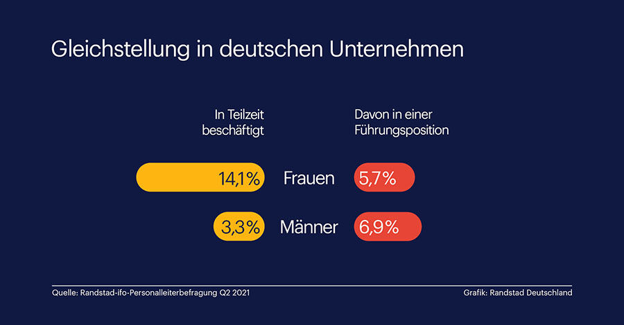 Führungspositionen in Teilzeit? Nein, denn das ist in fast der Hälfte der deutschen Unternehmen kein Beschäftigungsmodell. 45 Prozent der Firmen, die in der aktuellen Randstad-ifo-Personalleiterbefragung (Q2 2021) zu ...