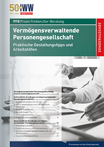 Bieten Sie Arzt-Mandanten fundierte Unterstützung bei der Gestaltung von Vermögensaufbau und -nachfolge. Die neue Sonderausgabe von PFB Praxis Freiberufler-Beratung zeigt, wie Sie das Instrument der vermögensverwaltenden Personengesellschaft hier optimal nutzen.