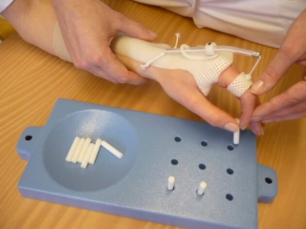- Motorisch-funktionelle Behandlung (MFB): Hier werden Kraft, Beweglichkeit, Ausdauer sowie Koordination trainiert und körperliche Bewegungsabläufe gezielt eingeübt. Dies kann geschehen durch handwerkliche, spielerische und gestalterische Behandlungstechniken, Training der Aktivitäten des täglichen Lebens oder Versorgung mit Alltagshilfen.