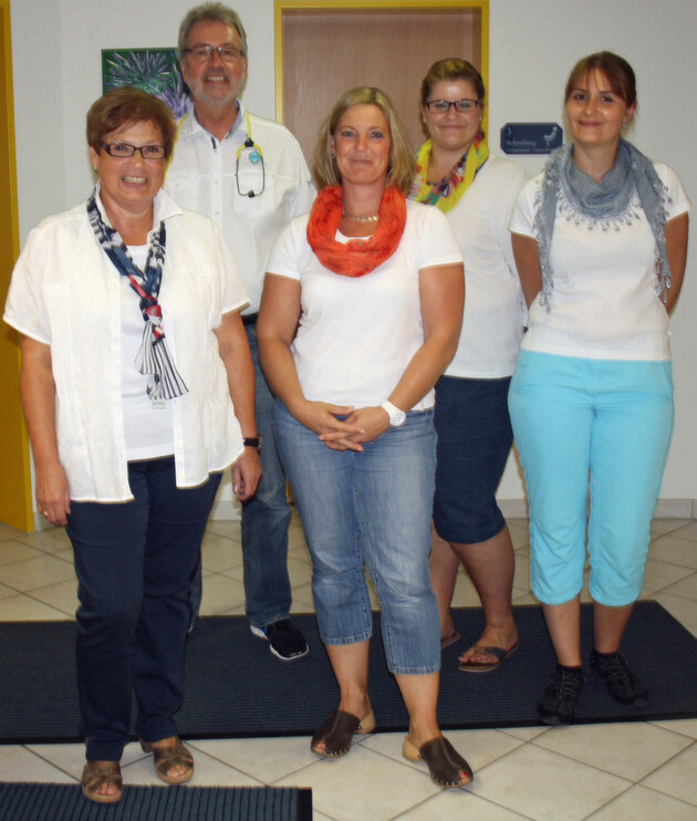 Von links nach rechts: Reinhild Remy-Sayn, Dr. Hans Werner Müller, Claudia Kienast, Kathrin Wehler, Stefanie Ehrhardt - © Praxis Dr. H.-W. Müller