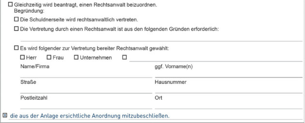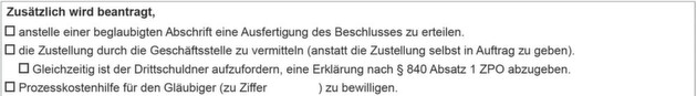 Der Gläubiger sollte im Antrag Folgendes ergänzen: