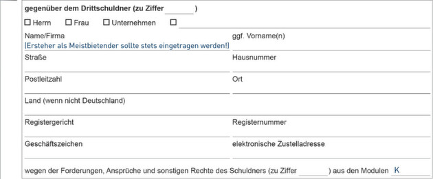 | In VE 12, 195 und 22, 82 haben wir über Ansprüche aus einem Zwangsversteigerungsverfahren berichtet. Einige Leser fragen hierzu, wie sich die Pfändung des sog. Übererlöses nach den neuen Zwangsvollstreckungsformularen gestaltet. Hierbei handelt es sich um die Fälle, in denen der Steigpreis, also der Versteigerungserlös, ausreicht, um sämtliche Grundstückbelastungen zu bedienen und dann noch Restbeträge übrig bleiben, die dem Schuldner als ehemaligem Eigentümer gegen den Ersteher als Meistbietendem zustehen. Dieser Anspruch ist nach § 857 Abs. 1 ZPO pfändbar. |
